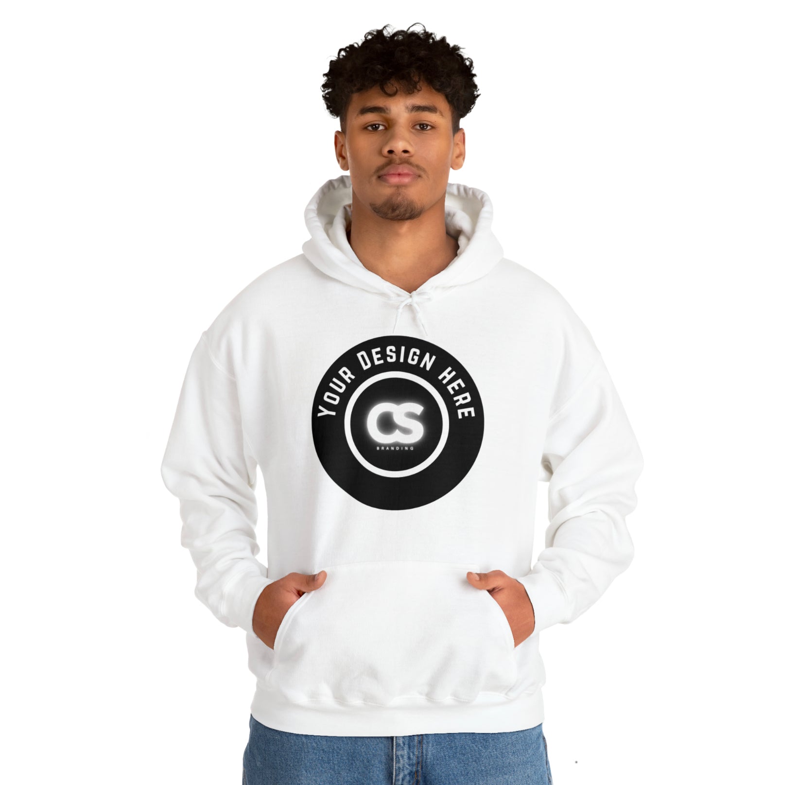 This unisex heavy blend hooded sweatshirt is relaxation itself. Made with a thick blend of cotton and polyester, it feels plush, soft and warm, a perfect choice for any cold day. In the front, the spacious kangaroo pocket adds daily practicality while the hood's drawstring is the same color as the base sweater for extra style points.