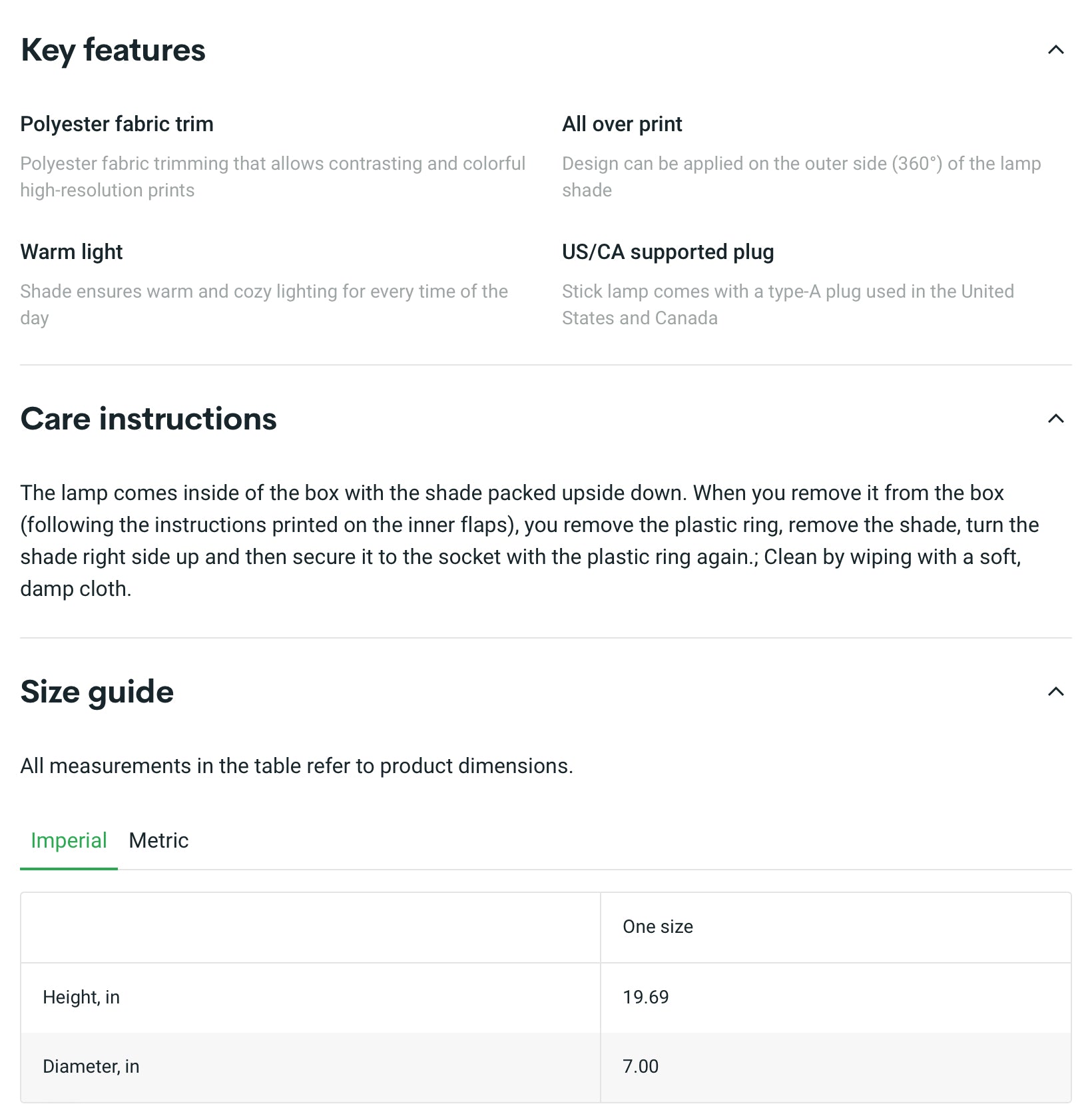 - High-res printed shade with a fabric trim