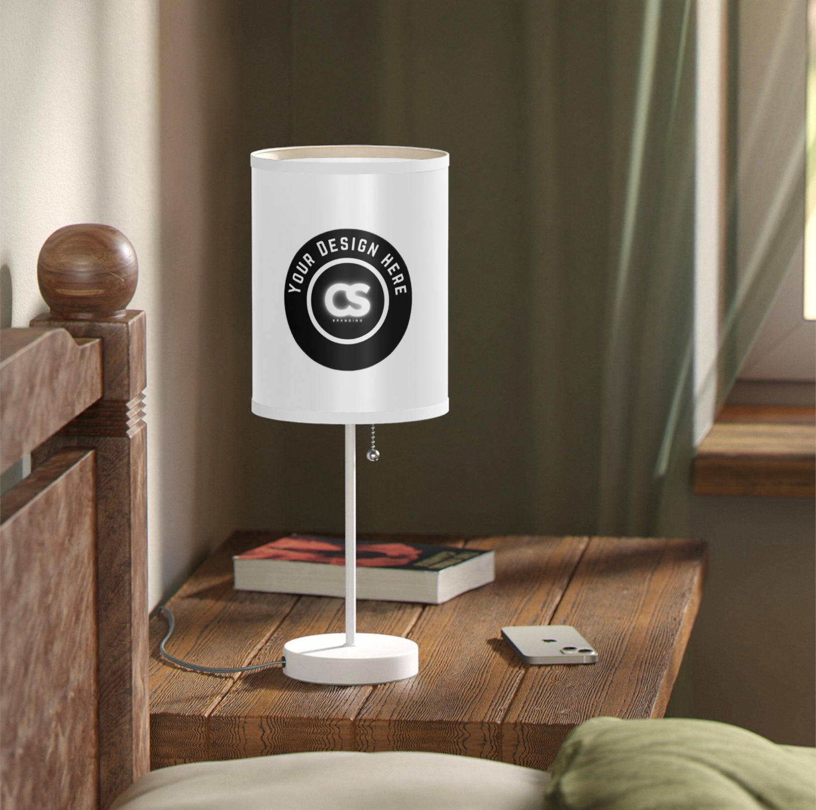 This unique table lamp stand features a steel base that comes with a classy finish in silver or white. The shade of the lamp is available in 10 different trim colors and can accommodate all your designs in high-resolution printing.