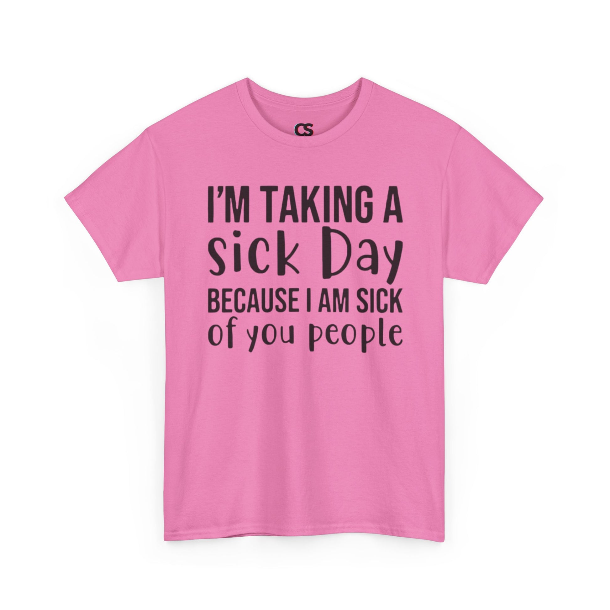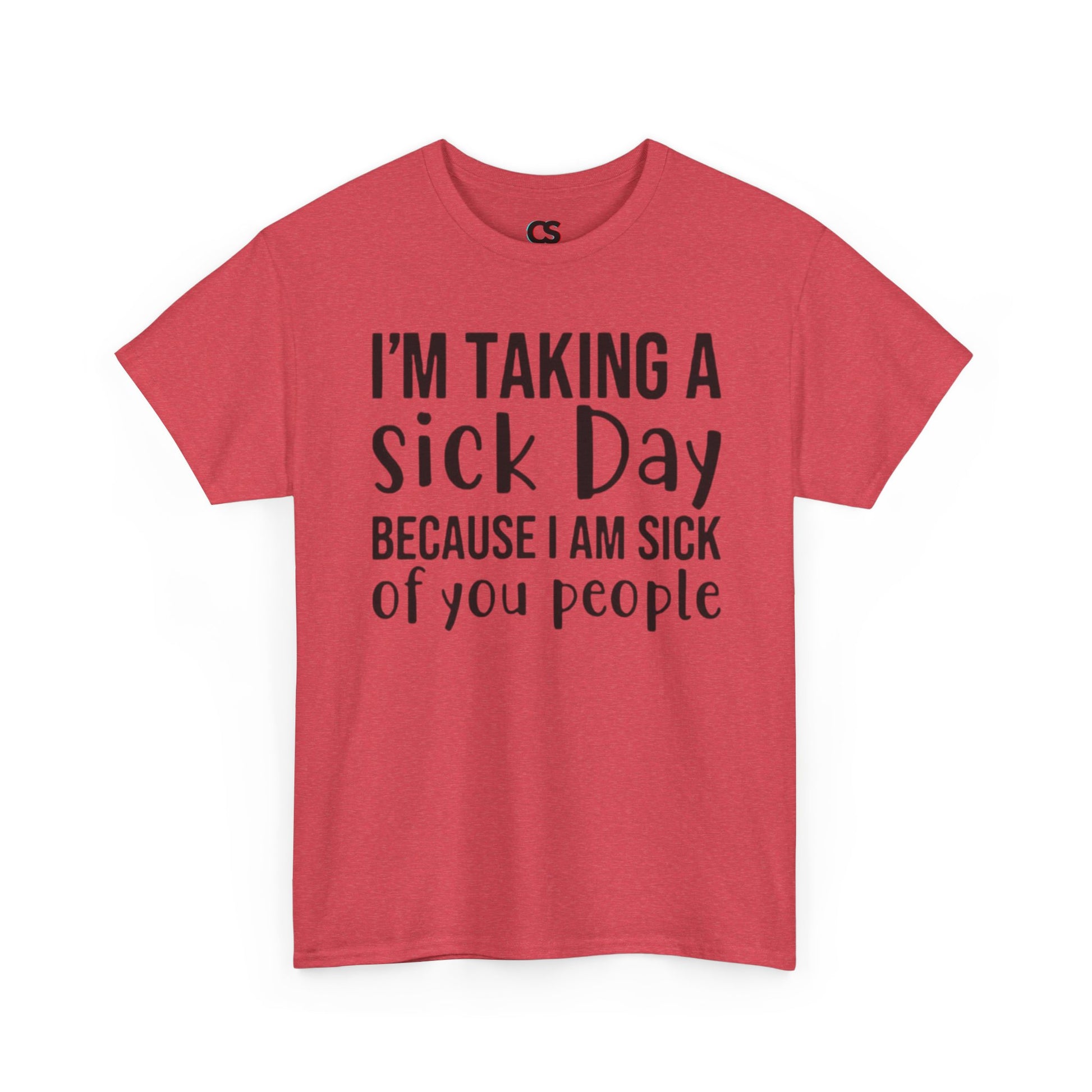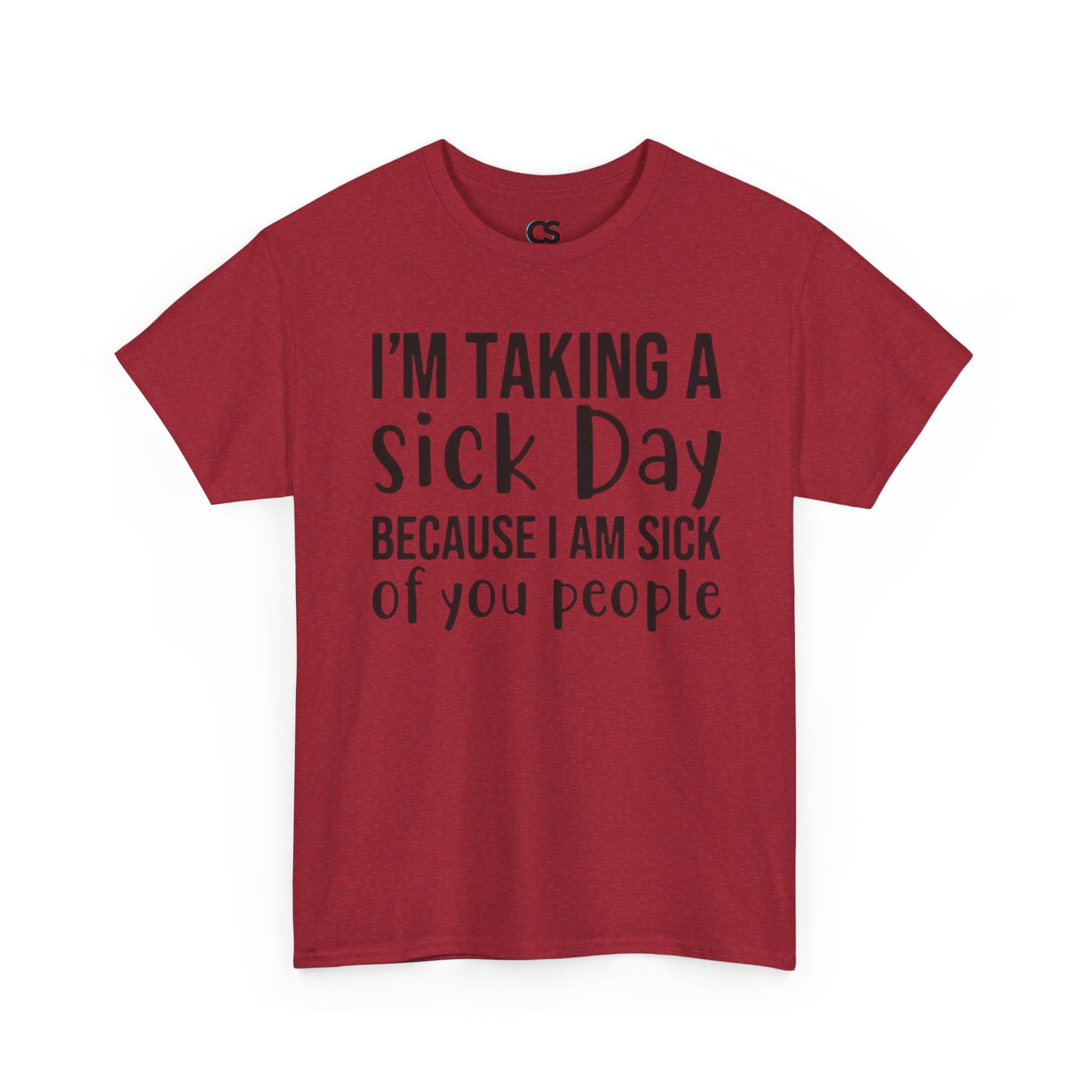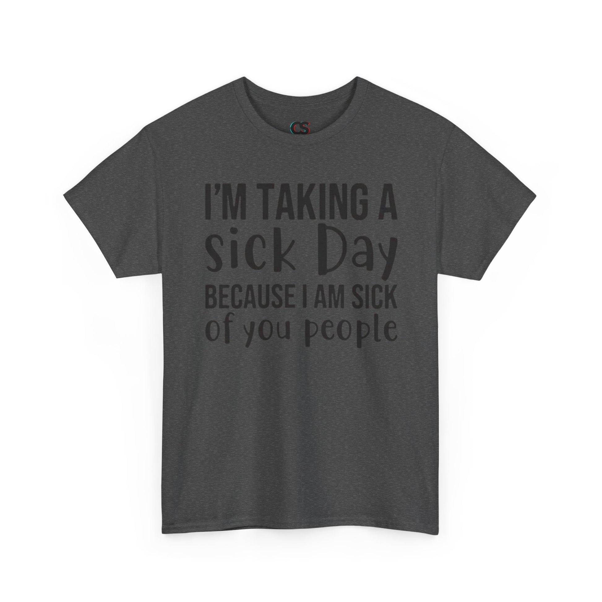 Introducing the ultimate Unisex Heavy Cotton Tee, perfect for those who appreciate comfort with a dash of humor. This cozy shirt is ideal for casual outings, relaxing at home, or gifting to friends who also love a good laugh. The witty phrase, 'Iām taking a sick day because I am sick of you people,' adds a fun vibe that lightens the mood, making it an excellent conversation starter. Suitable for any laid-back occasion, it's a hit during holidays like April Fool's Day or as a playful gift for birthdays, as well as perfect for lounging days. Designed for adults, this tee is not just a garment; it's a lifestyle choice for those who value humor as much as comfort.