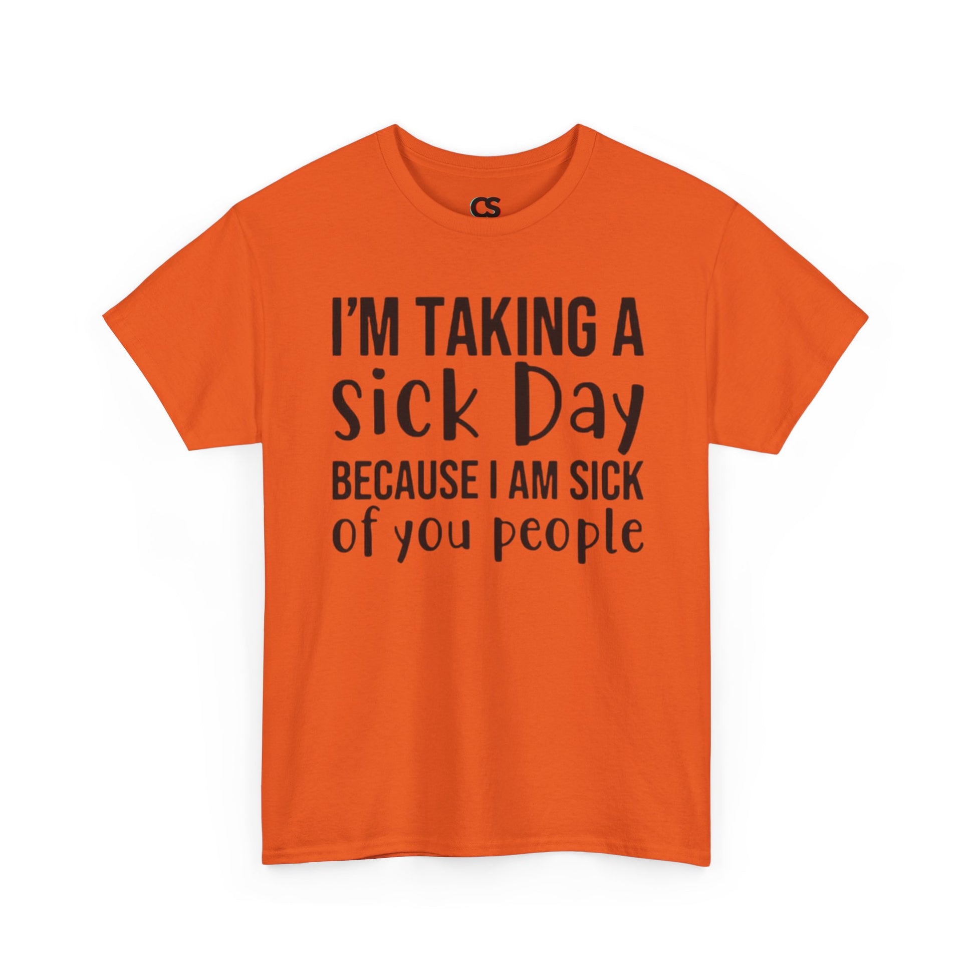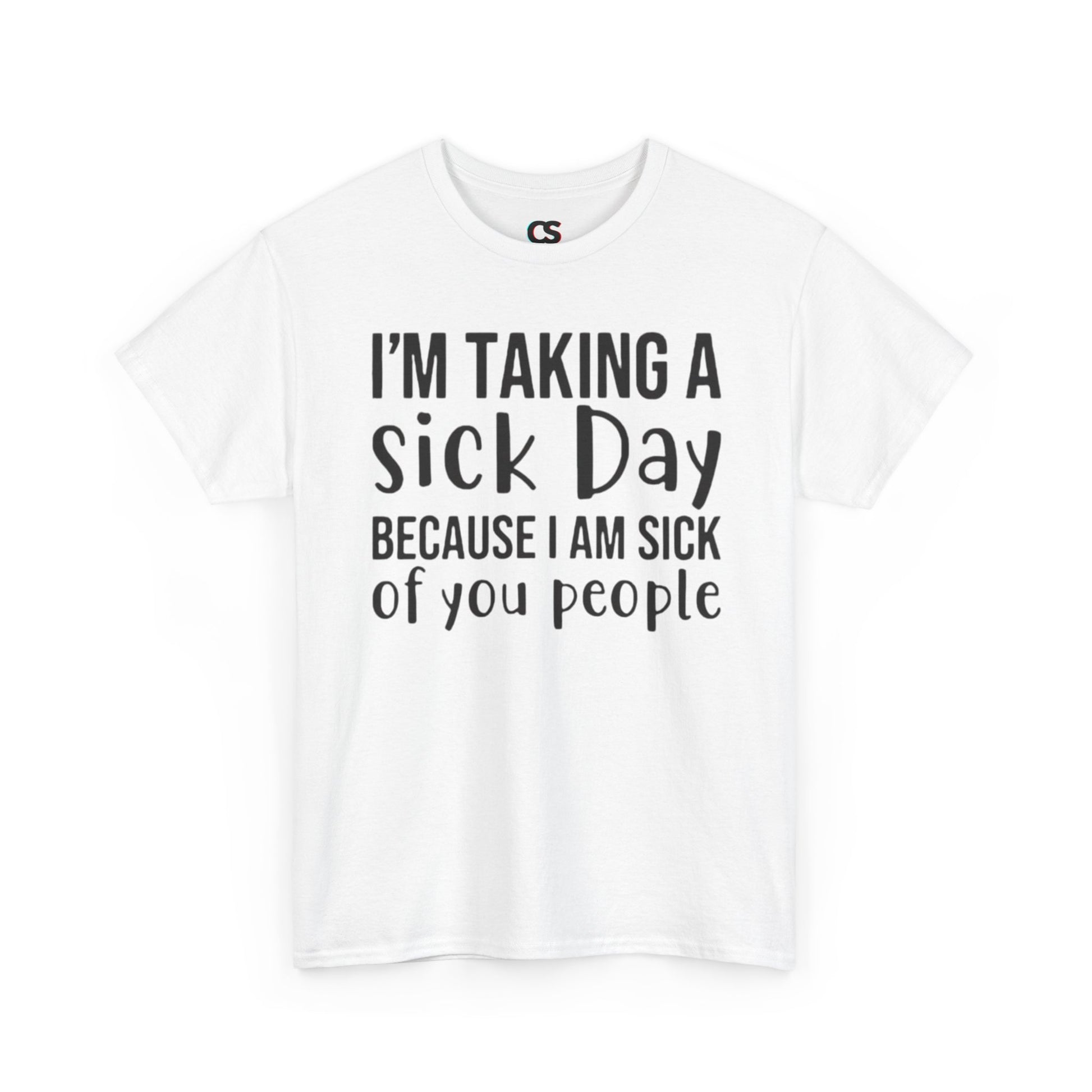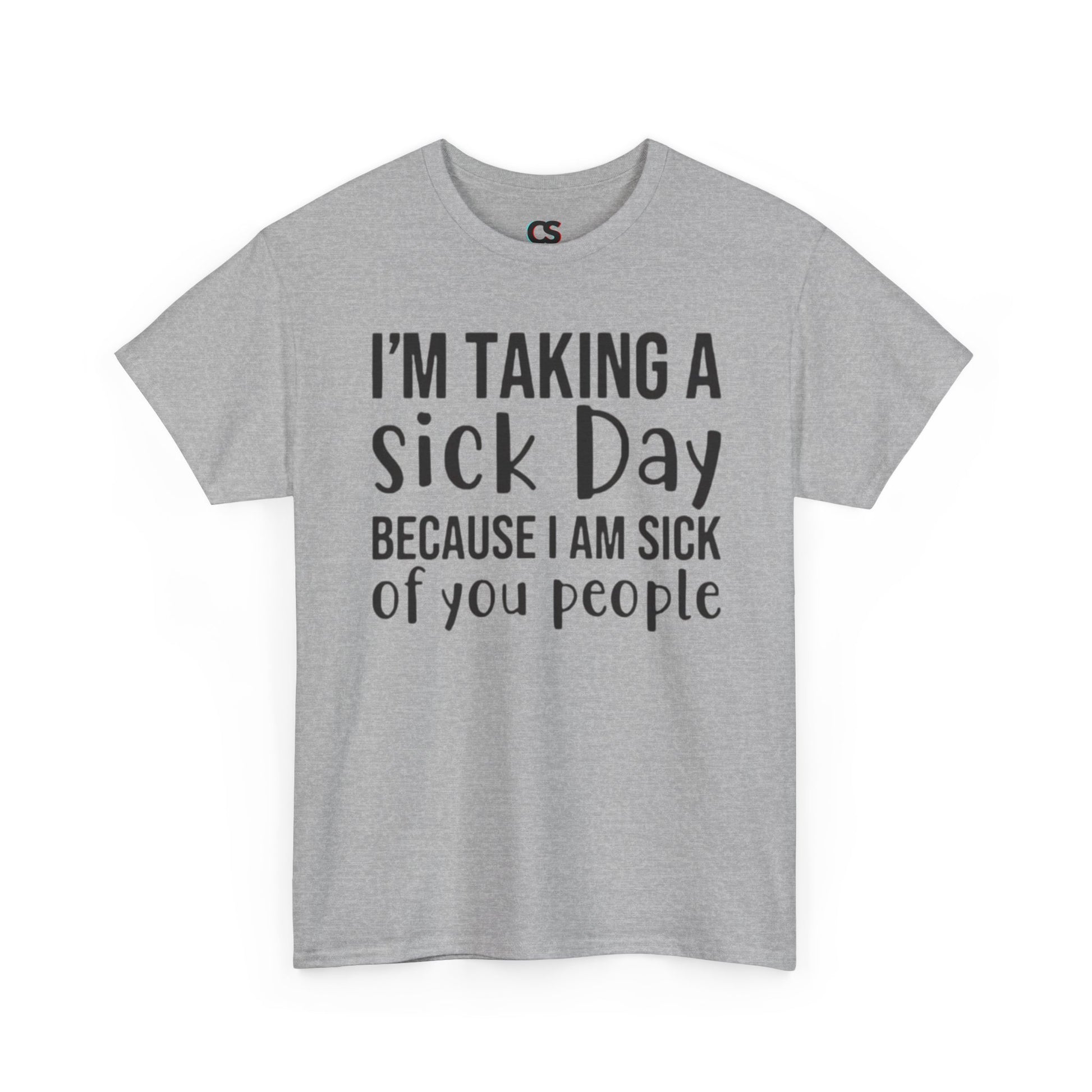 Introducing the ultimate Unisex Heavy Cotton Tee, perfect for those who appreciate comfort with a dash of humor. This cozy shirt is ideal for casual outings, relaxing at home, or gifting to friends who also love a good laugh. The witty phrase, 'Iām taking a sick day because I am sick of you people,' adds a fun vibe that lightens the mood, making it an excellent conversation starter. Suitable for any laid-back occasion, it's a hit during holidays like April Fool's Day or as a playful gift for birthdays, as well as perfect for lounging days. Designed for adults, this tee is not just a garment; it's a lifestyle choice for those who value humor as much as comfort.