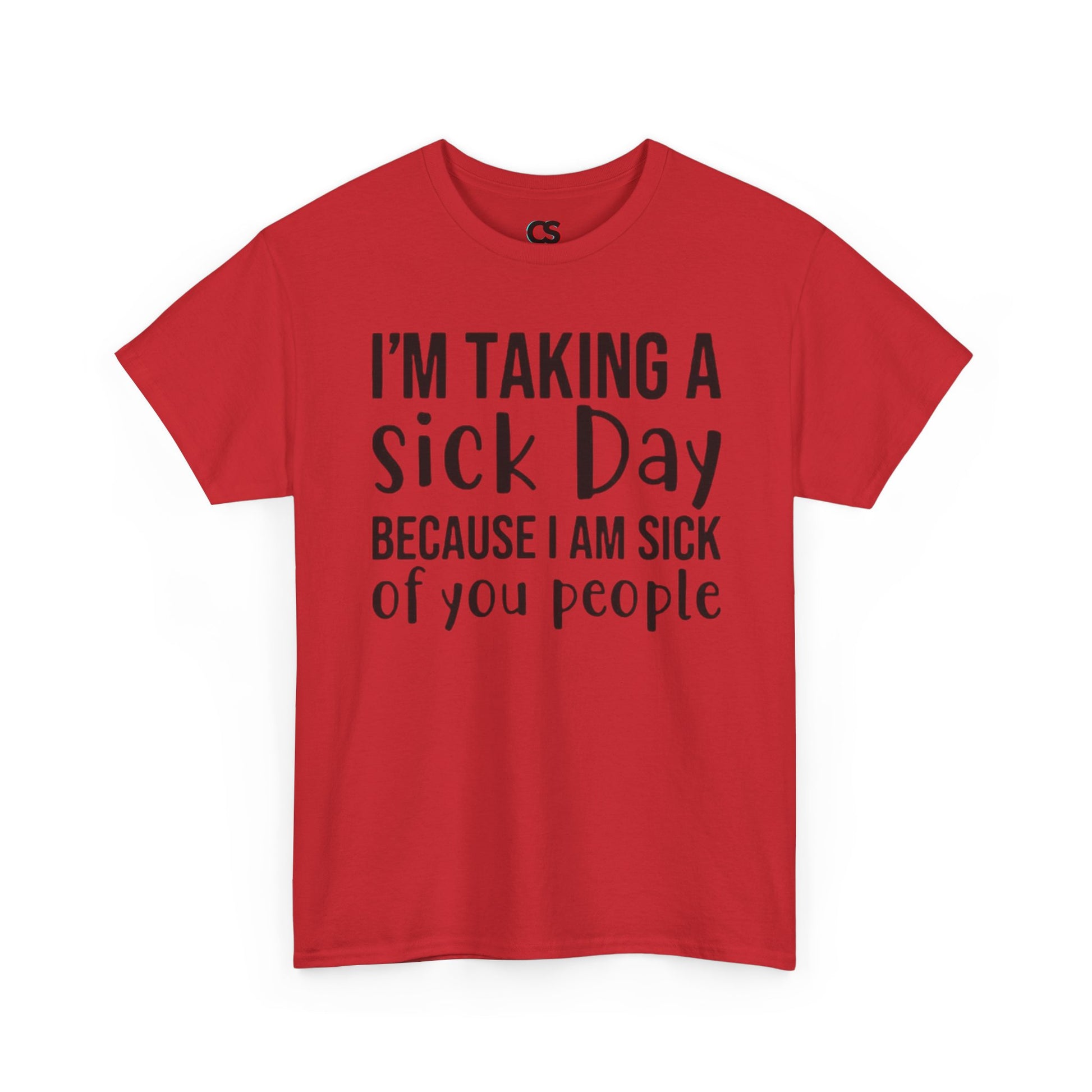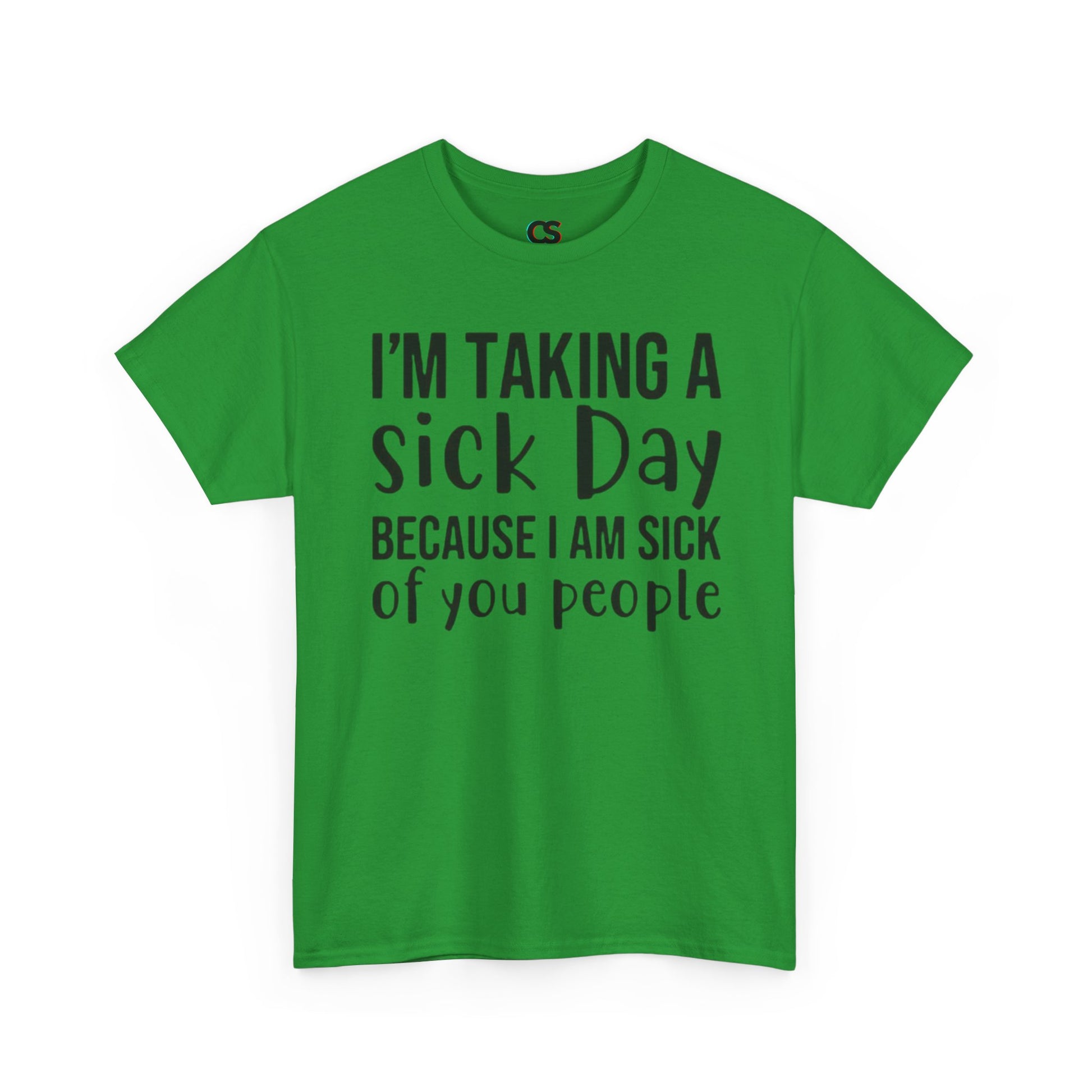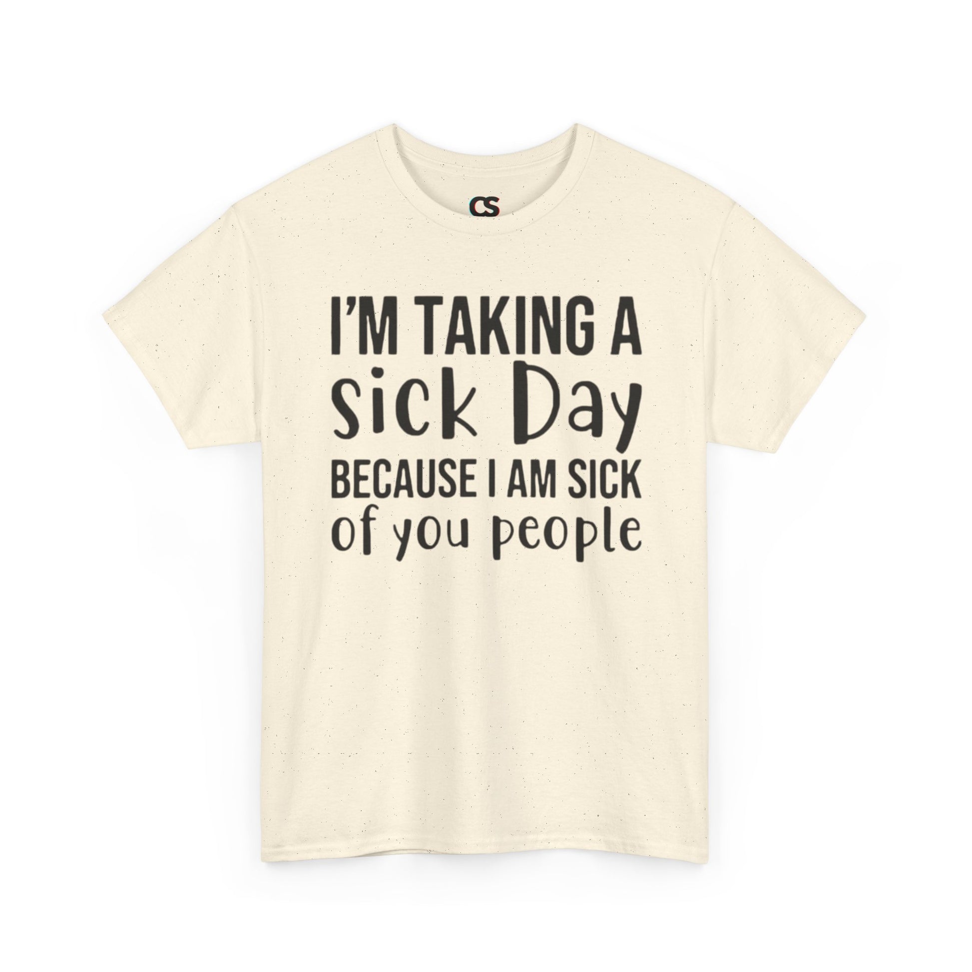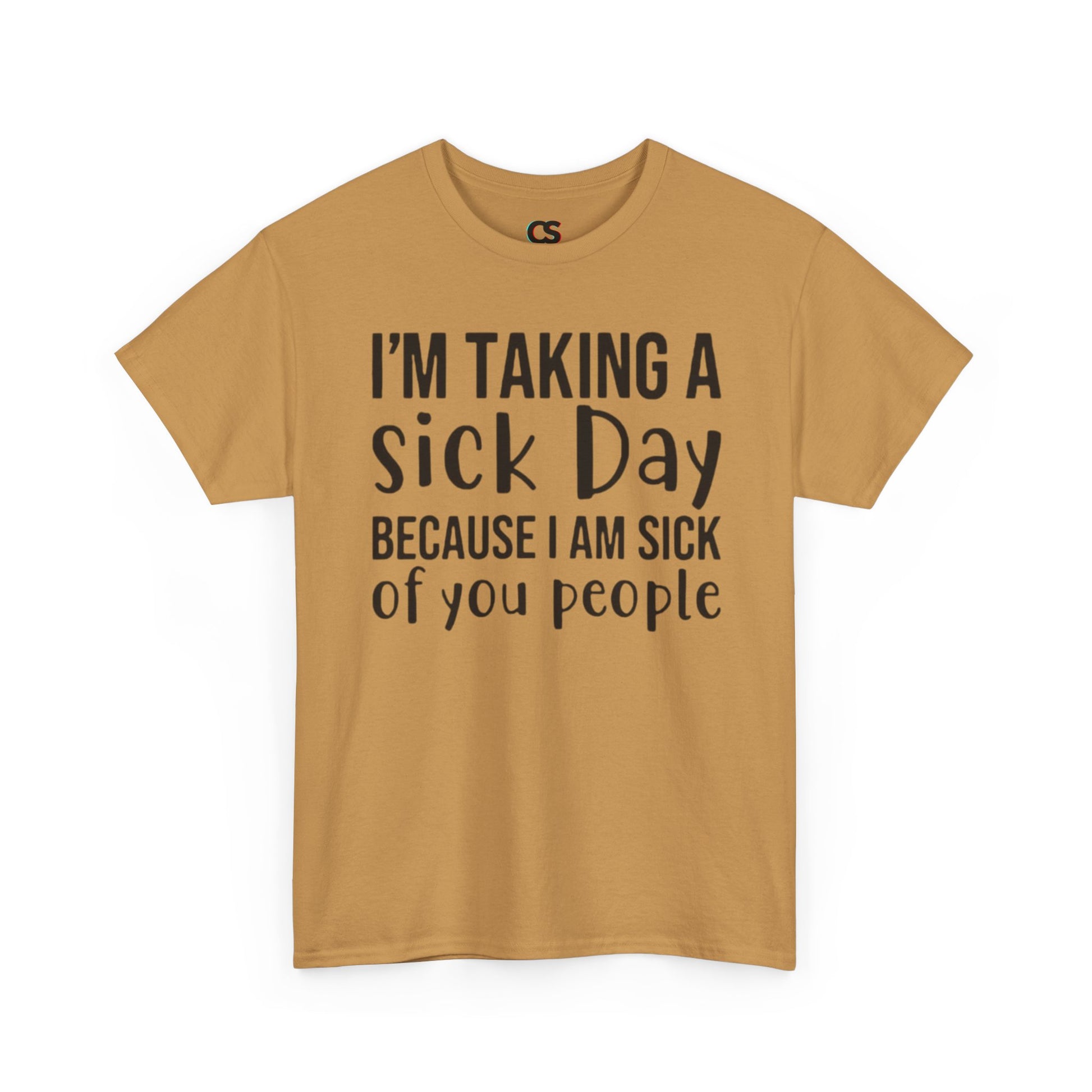 Introducing the ultimate Unisex Heavy Cotton Tee, perfect for those who appreciate comfort with a dash of humor. This cozy shirt is ideal for casual outings, relaxing at home, or gifting to friends who also love a good laugh. The witty phrase, 'Iām taking a sick day because I am sick of you people,' adds a fun vibe that lightens the mood, making it an excellent conversation starter. Suitable for any laid-back occasion, it's a hit during holidays like April Fool's Day or as a playful gift for birthdays, as well as perfect for lounging days. Designed for adults, this tee is not just a garment; it's a lifestyle choice for those who value humor as much as comfort.