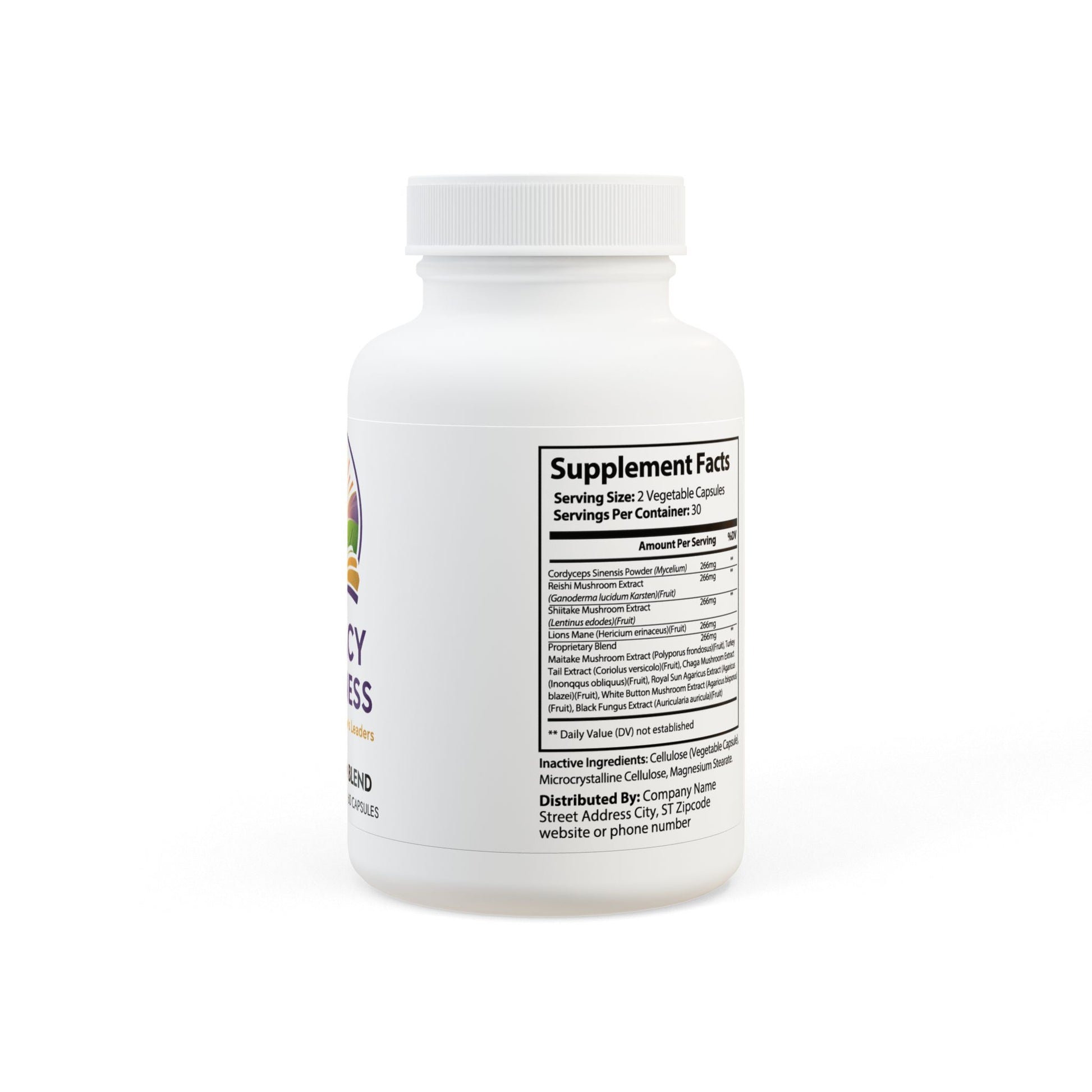 Ingredients: Cordyceps Sinensis Powder (Mycelium), Reishi Mushroom Extract, (Ganoderma lucidum Karsten)(Fruit), Shiitake Mushroom Extract, (Lentinus edodes)(Fruit), Lions Mane (Hericium erinaceus)(Fruit), Proprietary Blend, Maitake Mushroom Extract (Polyporus frondosus)(Fruit), Tail Extract (Coriolus versicolo)(Fruit), Chaga Mushroom Extract, (Inonqqus obliquus)(Fruit), Royal Sun Agaricus Extract (Agaricus blazei)(Fruit), White Button Mushroom Extract (Agaricus bisporus), (Fruit), Black Fungus Extract (Auricularia auricula)(Fruit), Cellulose (Vegetable Capsule), Microcrystalline Cellulose, Magnesium Stearate.